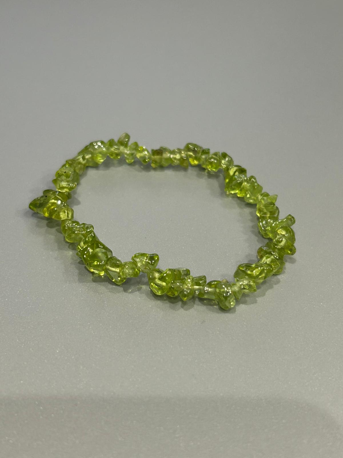 Náramok vyrobený zo sekaného polodrahokamu Olivín.
